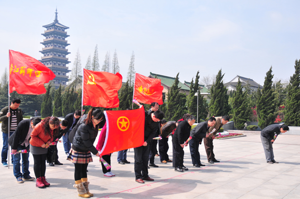 總部開展祭掃革命烈士墓活動 時間:2013-04-034489 4月3日,總部機(jī)關(guān)黨支部和團(tuán)委聯(lián)合開展祭掃革命烈士墓活動,總部機(jī)關(guān)、華建置業(yè)20余名同志參加。紀(jì)委副書記、黨辦主任陳緒寶主持活動,副總經(jīng)理兼總工程師程杰帶領(lǐng)大家向烈士紀(jì)念碑三鞠躬,并敬獻(xiàn)了鮮花,隨后大家共同參觀了烈士英雄事跡展。