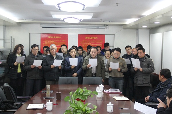 會(huì)議由建工控股公司紀(jì)委書(shū)記錢(qián)啟明主持。會(huì)上控股公司紀(jì)委副書(shū)記陳緒寶傳達(dá)了省、市有關(guān)廉政建設(shè)的文件精神,帶領(lǐng)地產(chǎn)員工認(rèn)真學(xué)習(xí)了中共中央辦公廳、國(guó)務(wù)院辦公廳近日印發(fā)的《關(guān)于做好2015年元旦春節(jié)期間有關(guān)工作的通知》等文件。錢(qián)啟明書(shū)記指出:要在地產(chǎn)板塊營(yíng)造陽(yáng)光、誠(chéng)信、廉潔的氛圍,首先要自覺(jué)加強(qiáng)學(xué)習(xí)、提高思想修養(yǎng),樹(shù)立正確的人生觀、價(jià)值觀;其次要嚴(yán)格工作制度、規(guī)范工作程序;第三要堅(jiān)持嚴(yán)肅的懲處違法違紀(jì)行為。地產(chǎn)公司董事長(zhǎng)程杰最后對(duì)全體員工進(jìn)一步提出四條要求:第一,要牢記自己的身份,時(shí)刻保持廉潔自律;第二領(lǐng)導(dǎo)要以身作則;第三要規(guī)范管理體系;第四要走正路、大路,陽(yáng)光路。