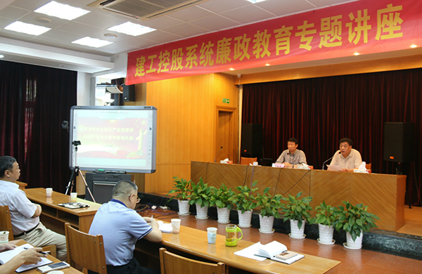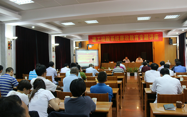 會上市紀委方加根主任進行了廉政教育專題講座,重點介紹了當前反腐工作形勢,分析了腐敗產(chǎn)生的原因,并引導與會人員對中央八項規(guī)定精神進行了再學習。通過生動的案例剖析,結(jié)合建工行業(yè)的特點,方主任對建工控股公司進一步推進全面從嚴治黨和落實中央八項規(guī)定提出了相關建議和要求。